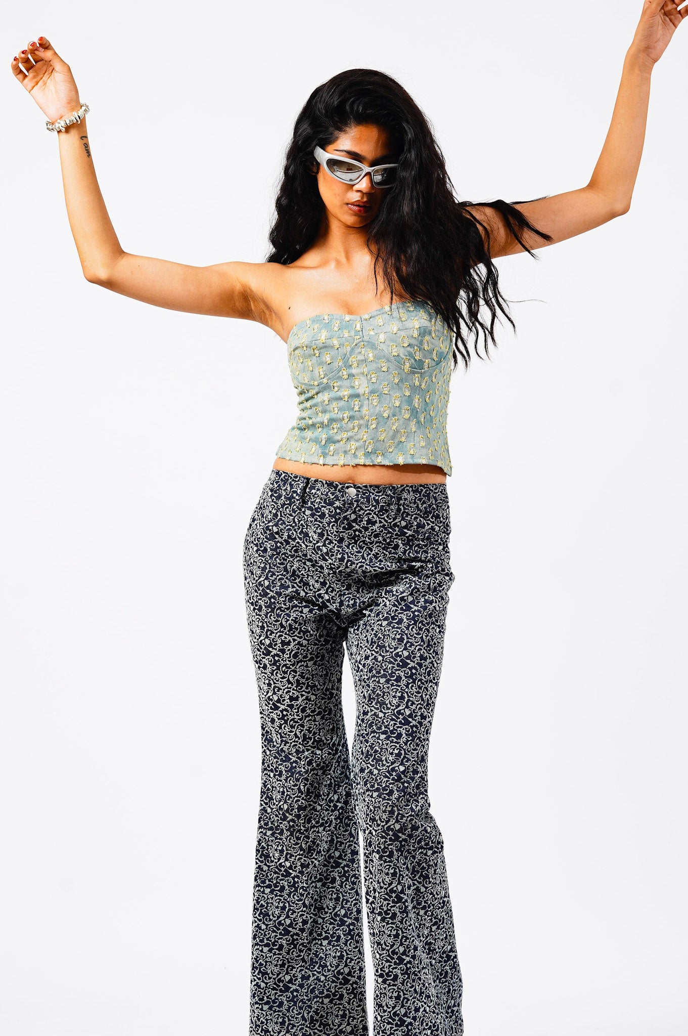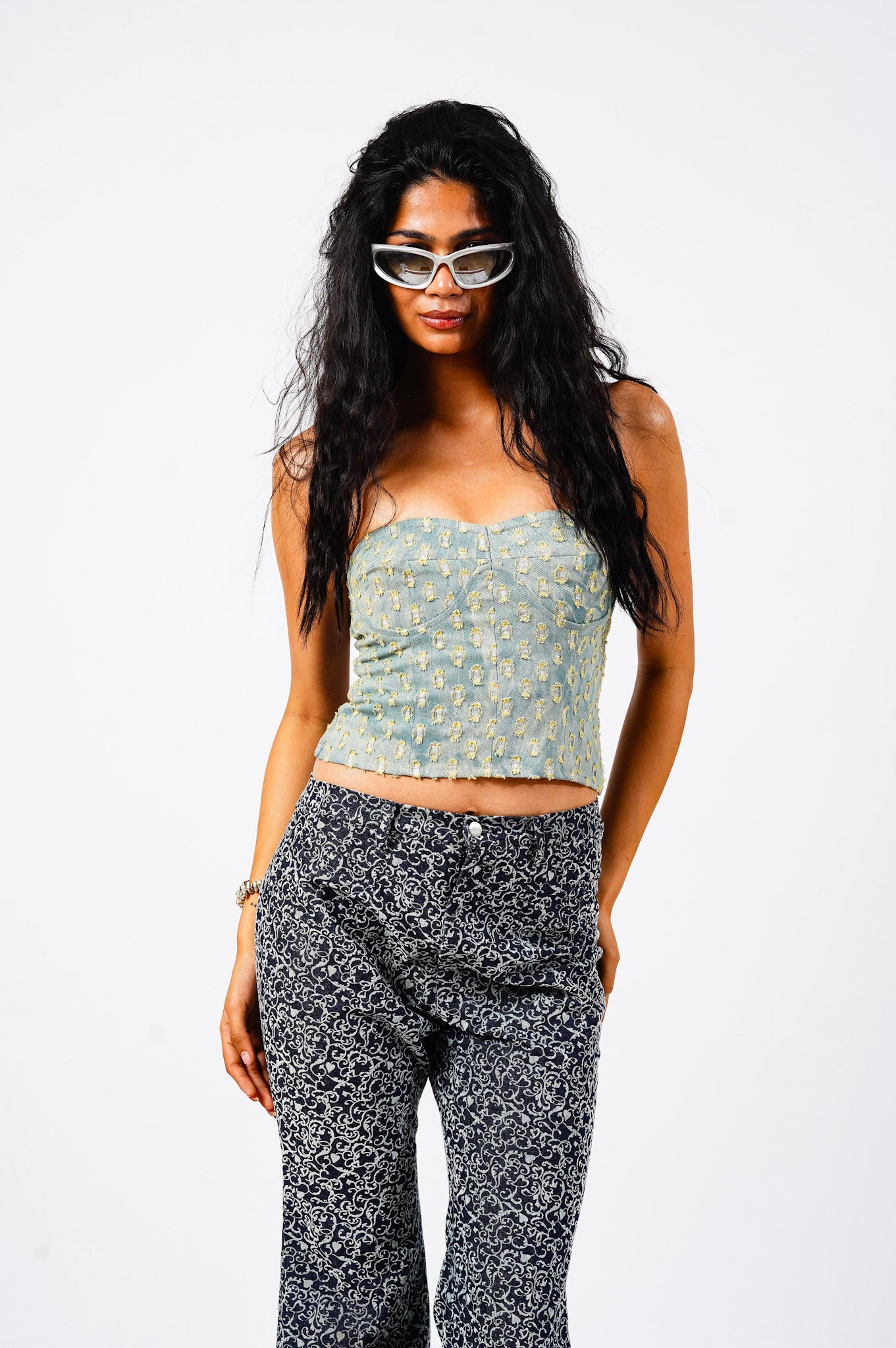 Honestly? Throw it on with anything. We love it with the Sonic Pants like shown here, but it also kills with cargo skirts, low-rise jeans, or tailored trousers. If you’re feeling romantic, layer it over a crisp white shirt.
