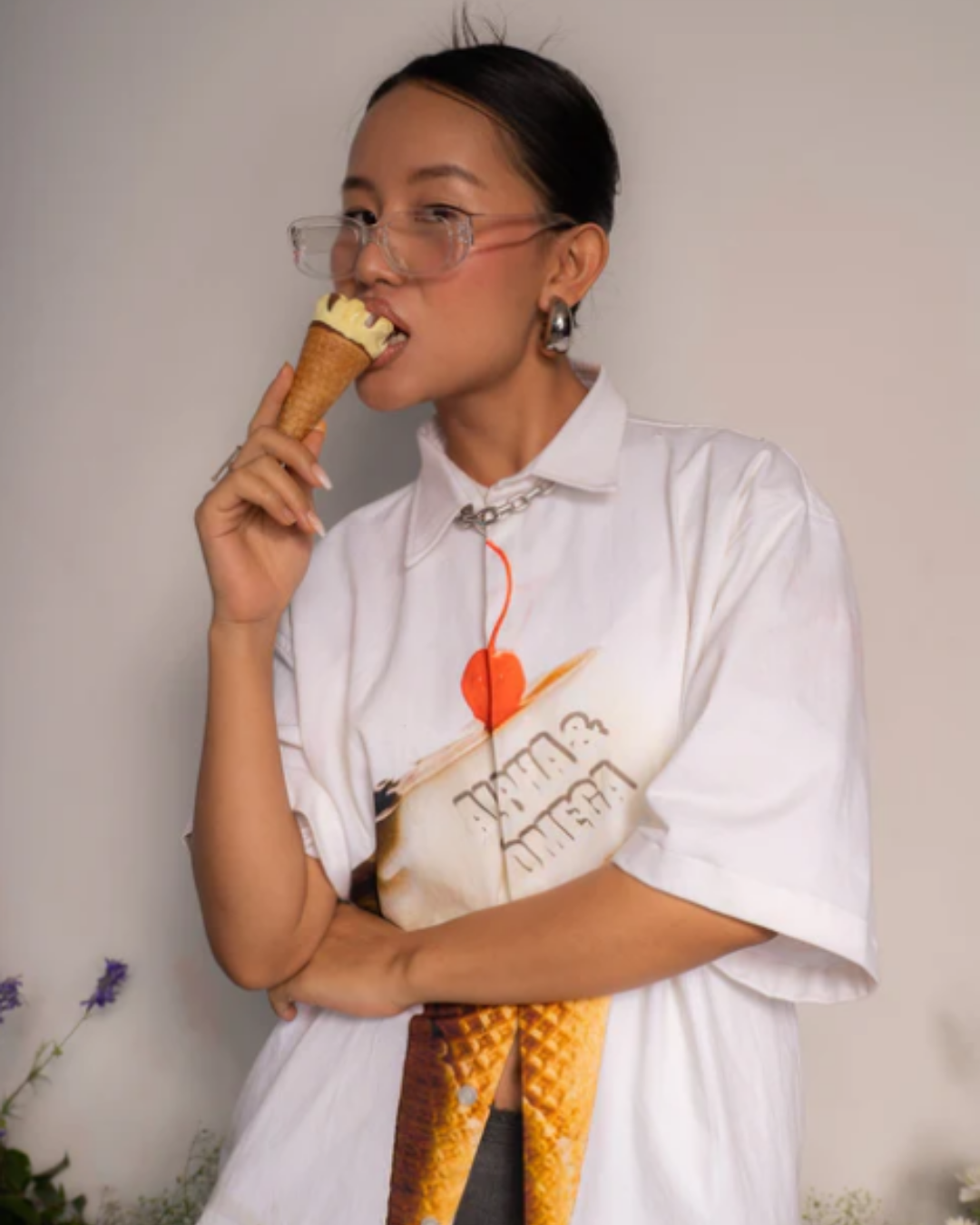 Introducing the Scream Shirt, another one of our unisex cotton twill shirts. This eye-catching piece features an A&O embossed ice cream print on the front and a playful embroidery at the back that says, "This is your sign to buy me an ice cream." But here's the fun part: if anyone ends up buying you an ice cream, simply tag us in your stories with the ice cream, send us their number, and we'll send you both a special discount coupon as a token of appreciation. We believe in spreading happiness the only way we know – through ice cream and discounts.
