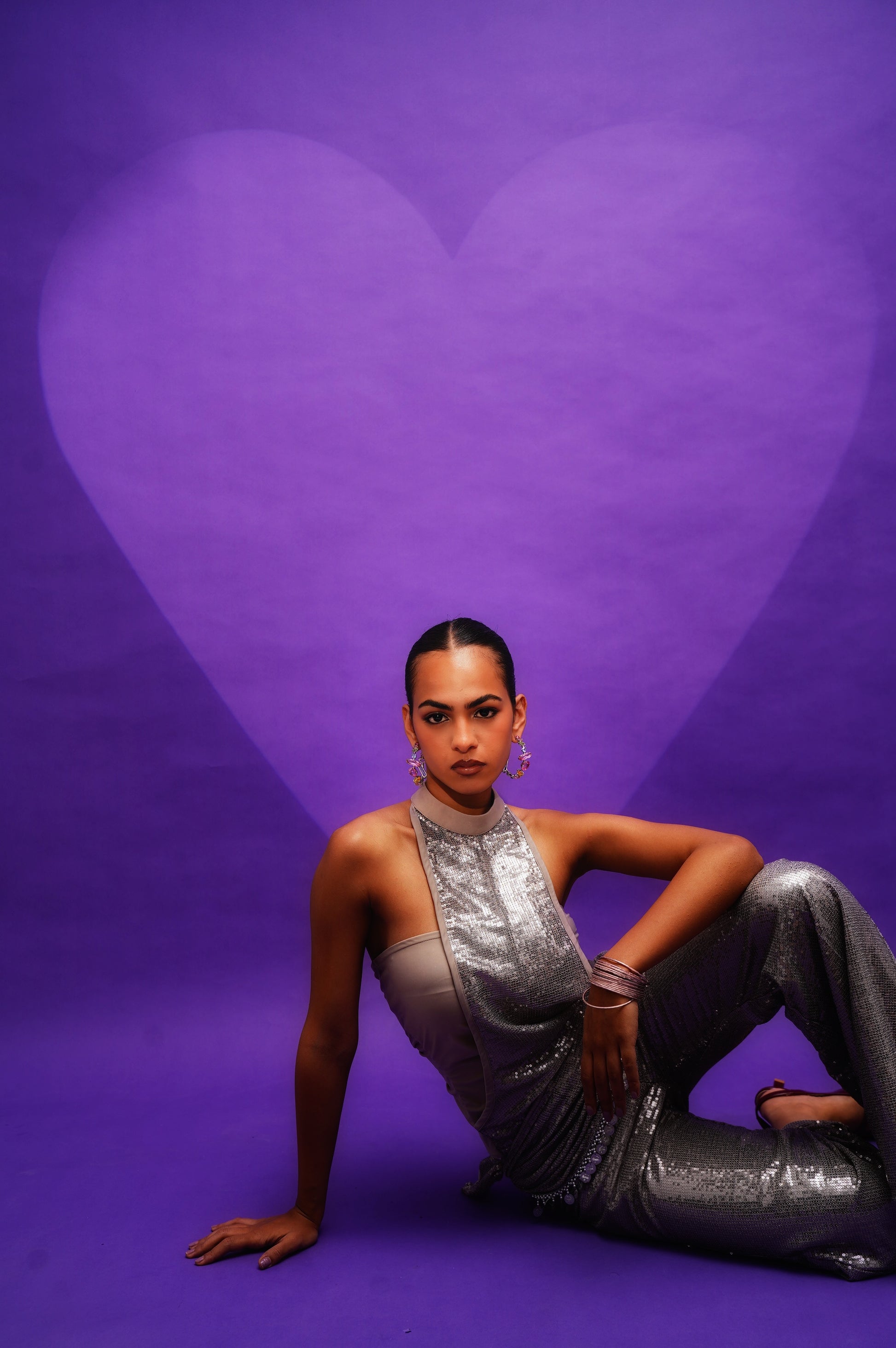 Pair with metallic heels and statement hoops for a night-out look that channels pure disco glamour.