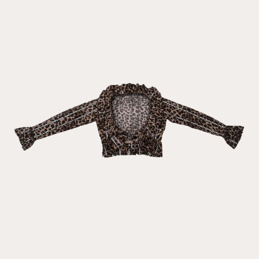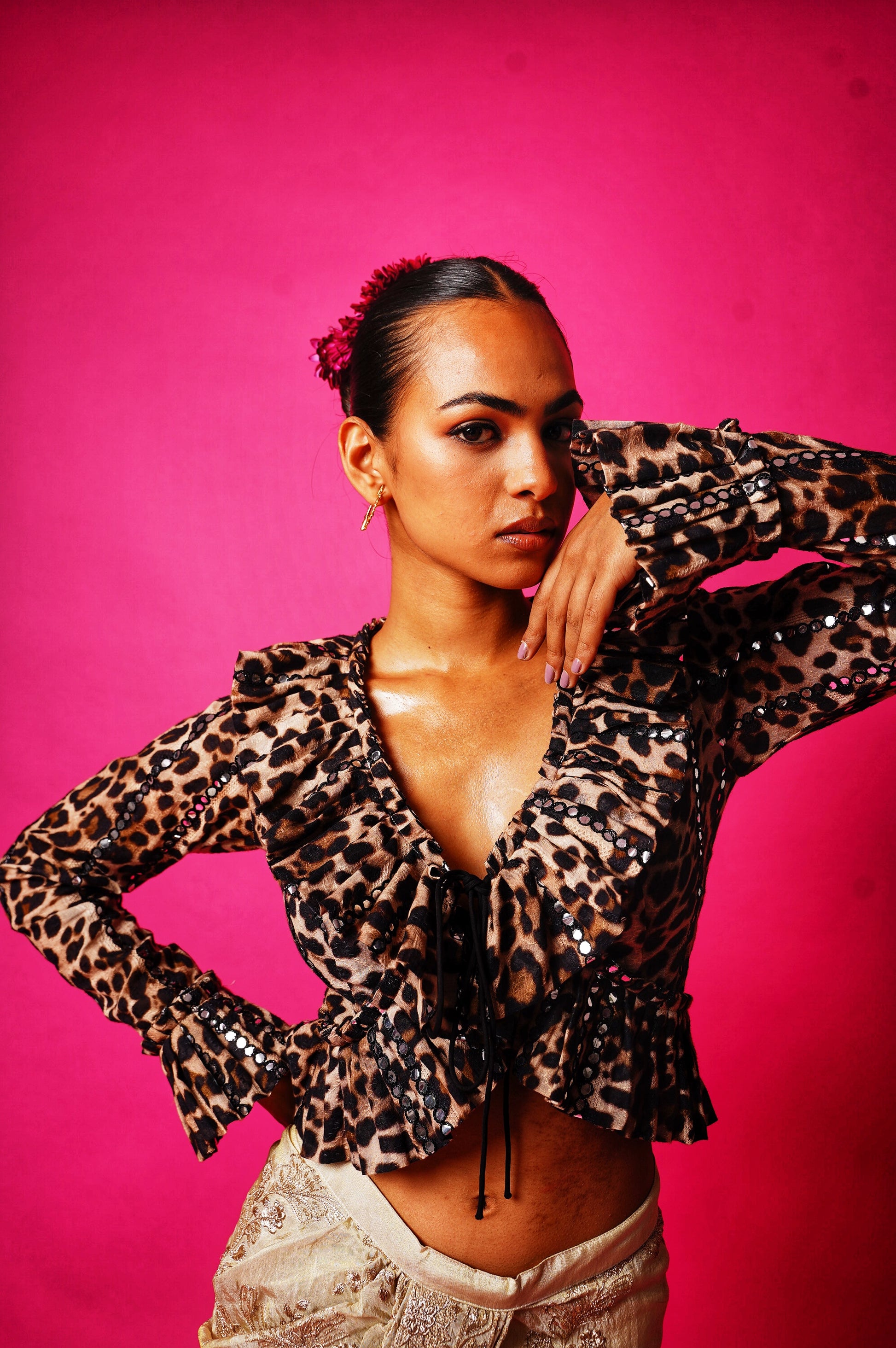 FEATURES:The classic animal print and feminine ruffles create a bold, playful contrast.
