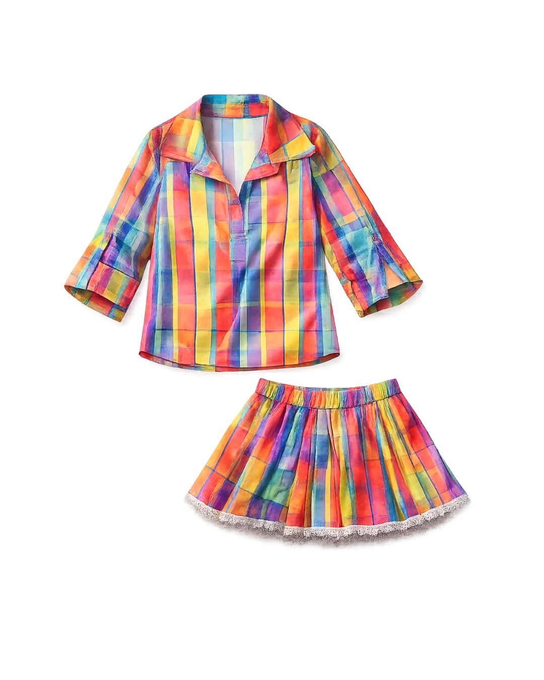 Style this set with white sneakers + a mini bag for an easy daytime look, or switch to strappy heels + glossy makeup for a playful night-out vibe. Add gold jewellery to elevate the colors, and keep your accessories minimal so the set stays the main statement.