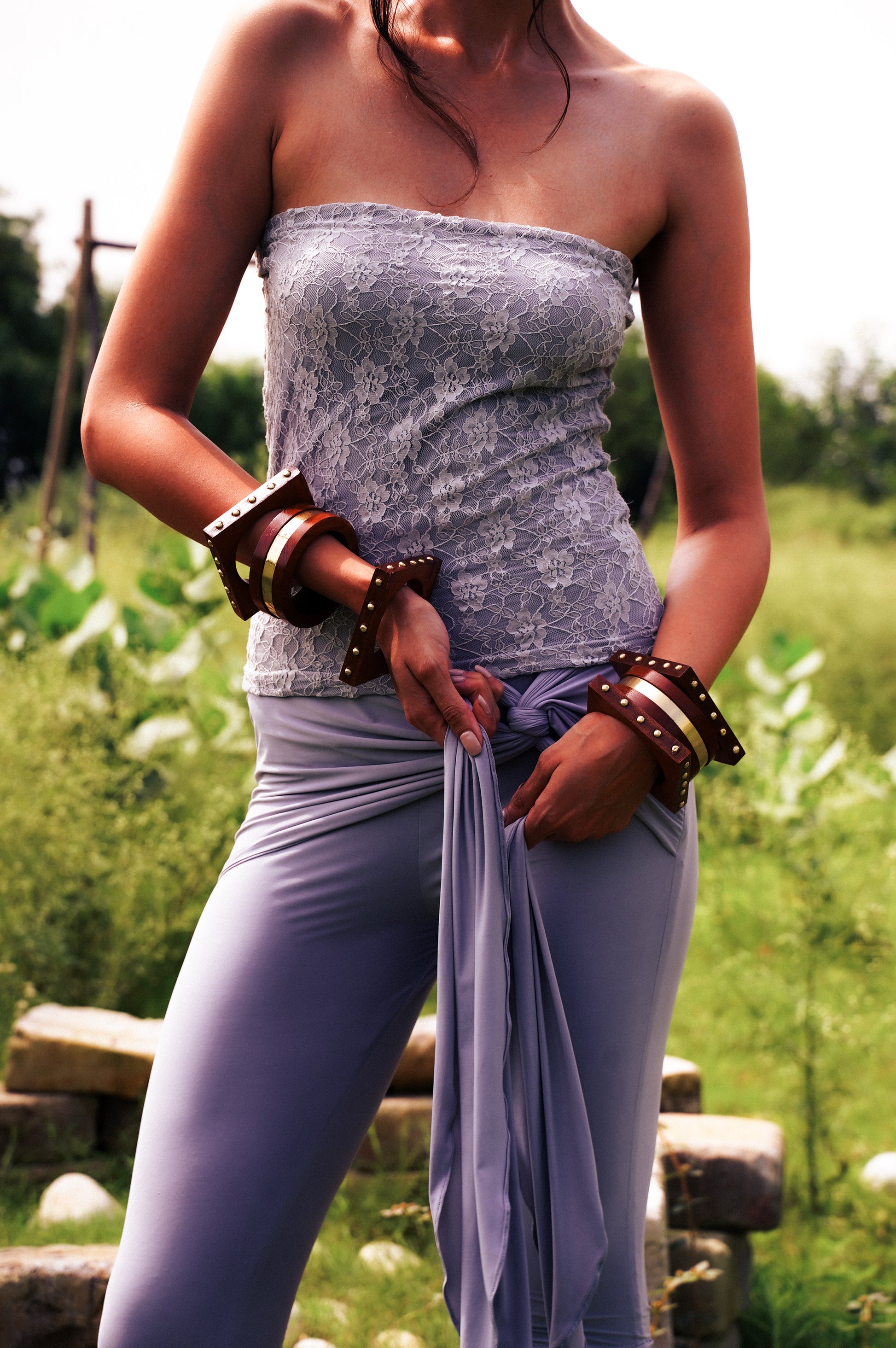 Mid-rise fit with tie-up detail at the waist